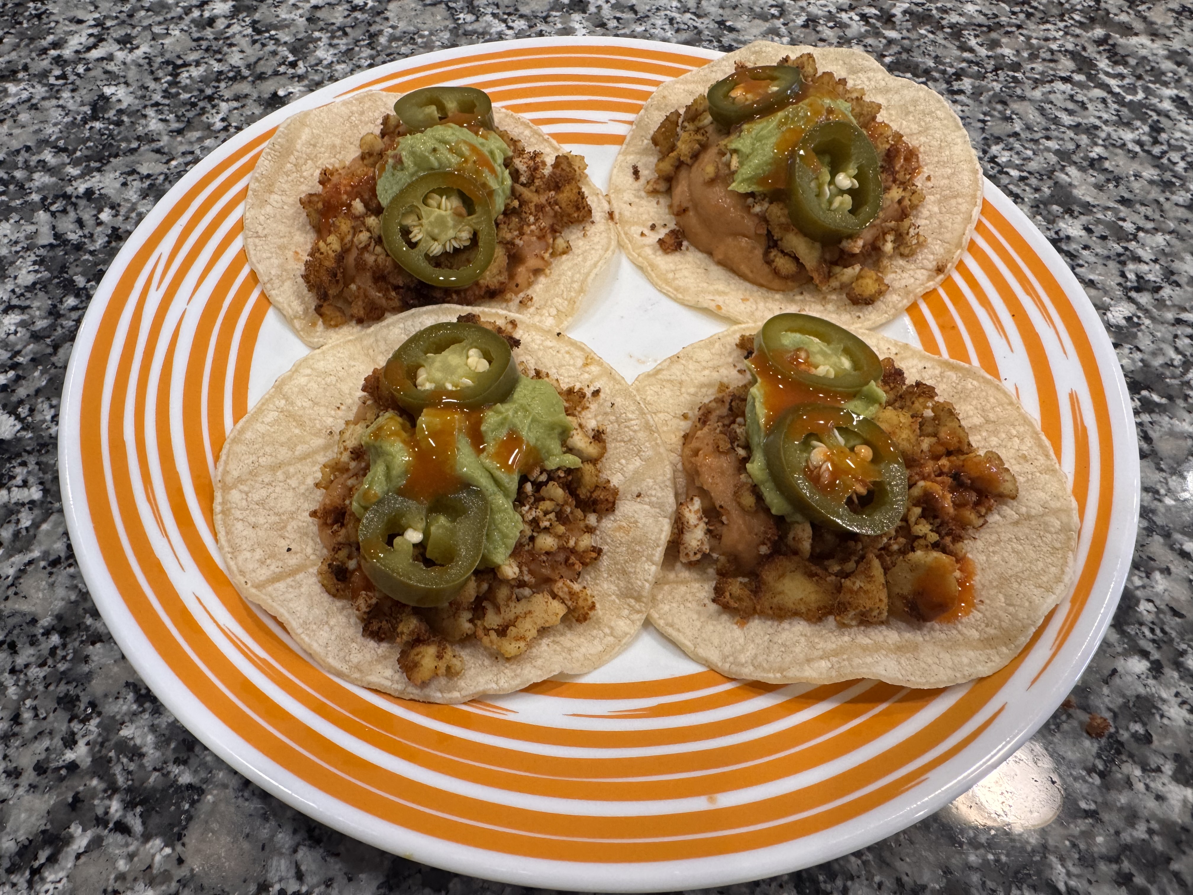 - The Assembly: Lightly toast four small corn tortillas. Spread the lentil mixture first, then top with the tofu, a pack of smashed avocado, and sliced jalapeños. (Add cilantro if you have it!)